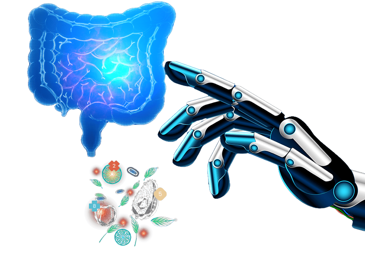 Guía de nutrición personalizada basada en Desarrollamos un algoritmo de IA que evalúa de manera holística la relación entre billones de bacterias intestinales y parámetros de salud general para crear una estrategia dietética óptima y personalizada que transforma el perfil del microbioma de cada individuo a un estado más saludable.